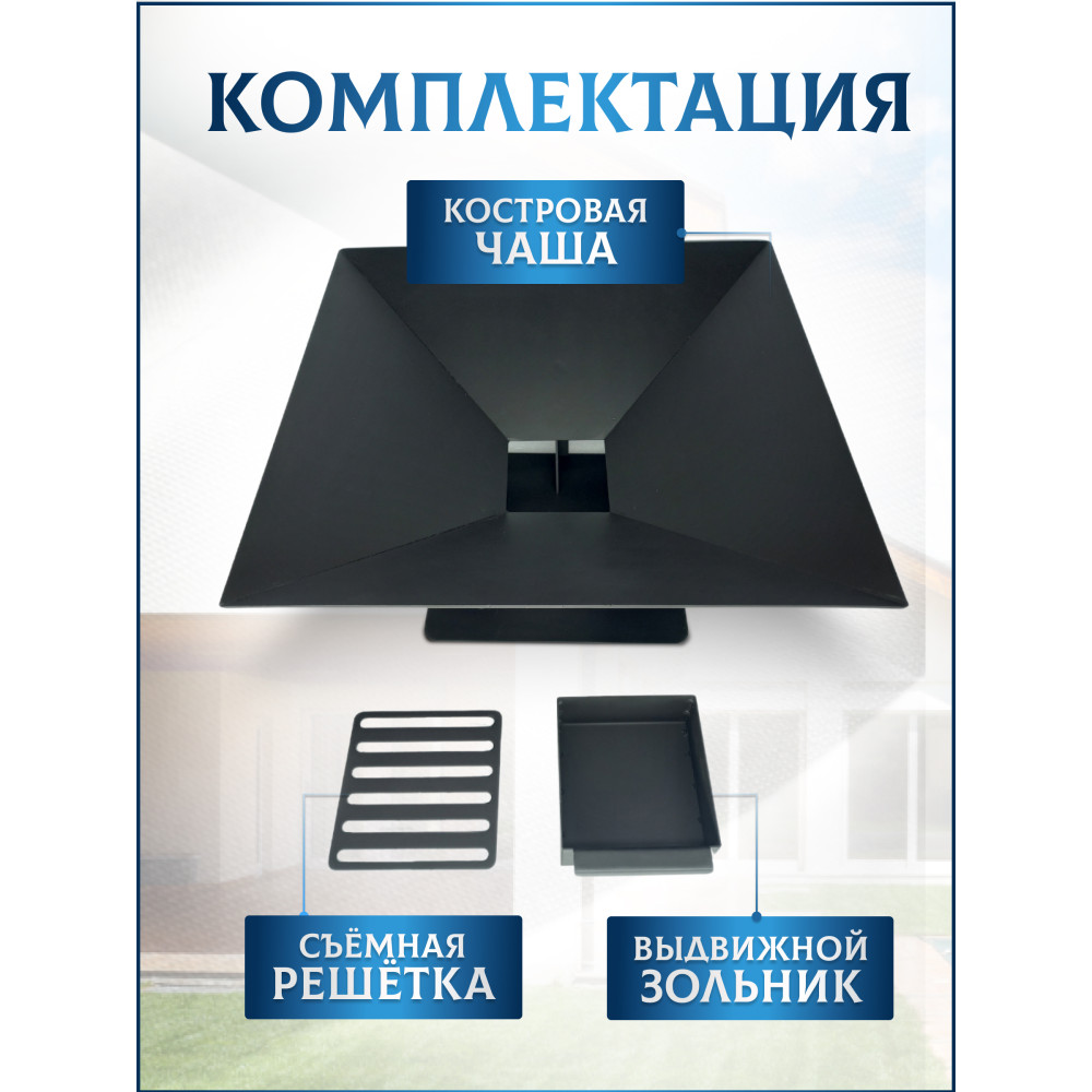 "Костровая чаша – уникальный очаг для костра, обеспечивающий организованное и безопасное разведения огня на участке загородного дома, который повышает комфорт и стиль вашего времяпровождения с семьёй либо друзьями. Очаг для костра создан для сада и дачи, а также для зоны барбекю или патио. Современный и стильный внешний вид делают эту чашу для костра идеальным дополнением для любителей изысканного ландшафтного дизайна и неповторимого благоустройства территории. На приусадебном владении он удобен в использовании в качестве гриля, для приготовления вкусной еды и создания уютной атмосферы вечерних посиделок, обеспечивая тепло и утешение, наблюдая за пламенем костерка. Эта чаша для костра также подходит для кемпинга, пикников и отдыха на открытом воздухе. Барбекю на даче. Благодаря жаростойкой краске и прочности стали, металлическая костровая чаша будет служить надежным помощником на протяжении многих лет. Разборная конструкция способствует компактному хранению и траспортировке, а так же облегчает чистку и уборку после пользования."