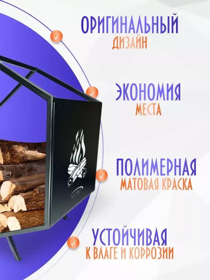 ДДмитрий Оценка покупки 5.021 Февраля, 2024Металл крепкий, покрытие равномерное. Дрова в доме больше не валяются где попало. Камин стал выглядеть как на картинке — тепло и порядок.