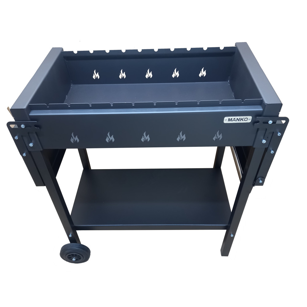 | Длина упаковки76 см | Количество шампуров10 шт. | Комплектациямангал 1 шт.; ножка 4 шт.; полка боковая 2 шт.; полка нижняя 1 шт.; колесо 2 шт. |