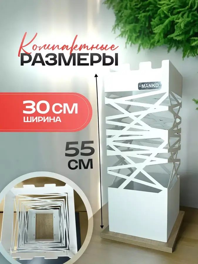 ВВиктория Л. Оценка покупки 5.025 Сентября, 2024Заказала эту металлическую подставку для зонтов, чтобы добавить немного индустриального шарма в интерьер. Качество превзошло ожидания — материал прочный, конструкция устойчивая. Особенно понравилось, как легко она чистится. Теперь все зонты аккуратно хранятся, и гости всегда замечают этот элемент декора!