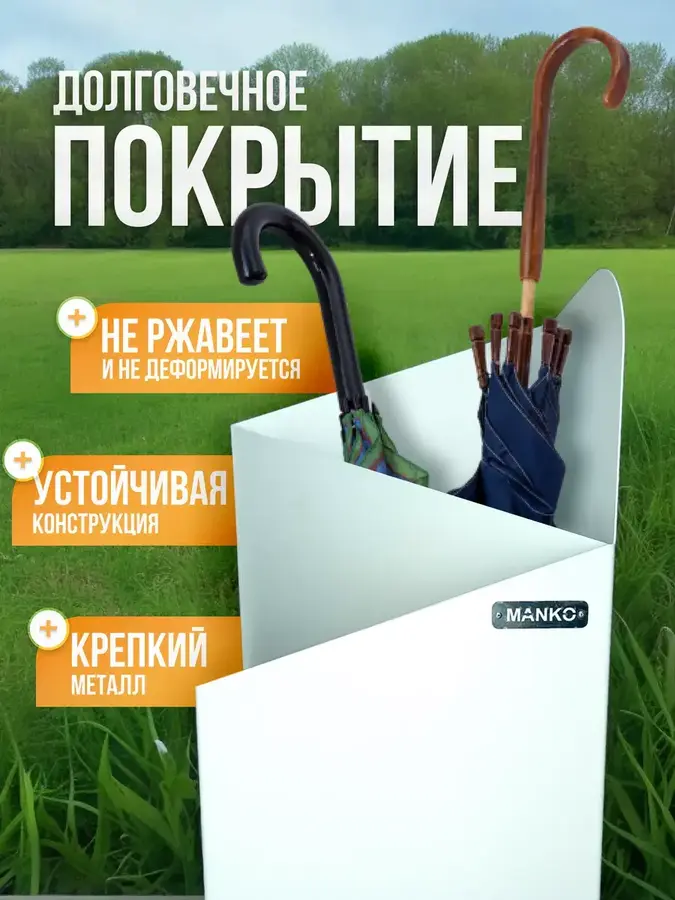 ВВиктория Л. Оценка покупки 5.025 Сентября, 2024Заказала эту металлическую подставку для зонтов, чтобы добавить немного индустриального шарма в интерьер. Качество превзошло ожидания — материал прочный, конструкция устойчивая. Особенно понравилось, как легко она чистится. Теперь все зонты аккуратно хранятся, и гости всегда замечают этот элемент декора!